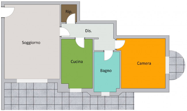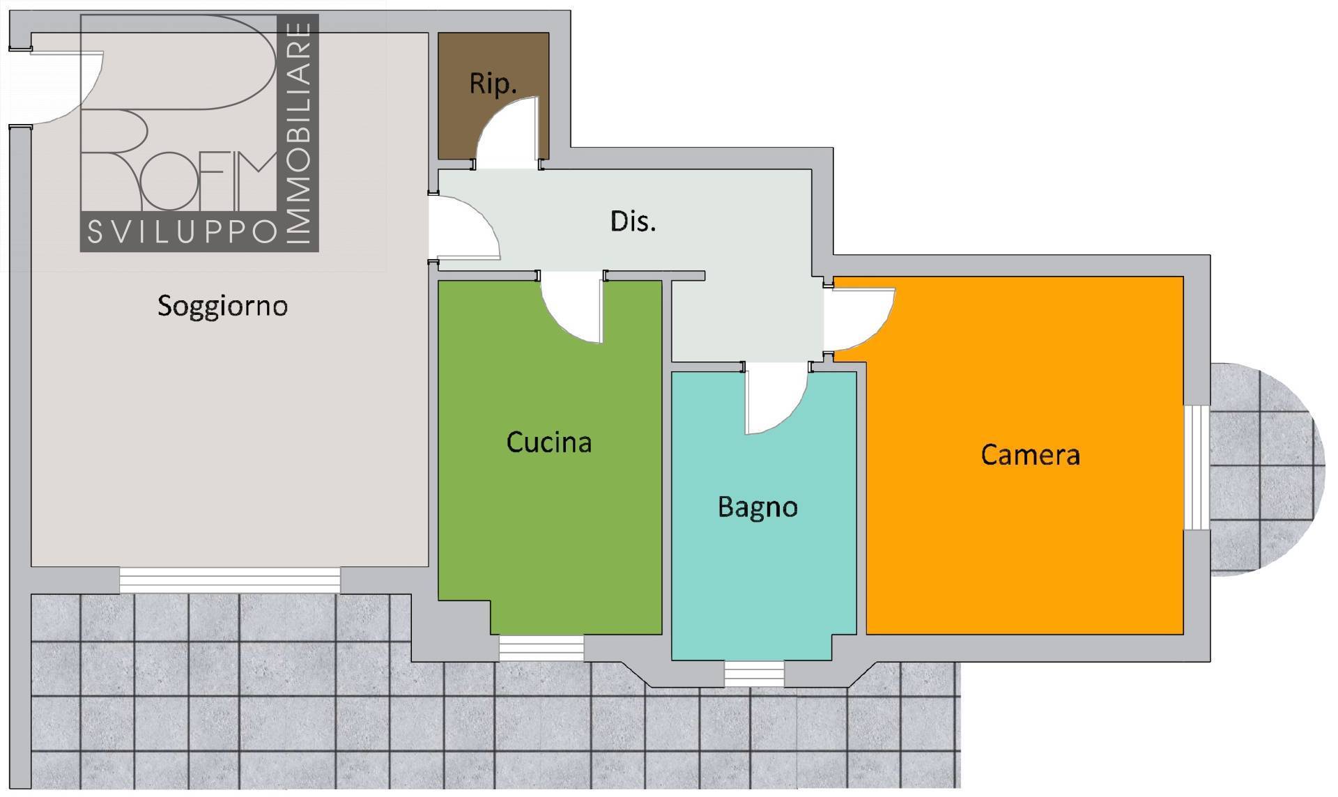 L'Appartamento è composto da un ampio soggiorno, una cucina abitabile, una spaziosa camera da letto con balcone, un bagno con doccia e 1/2 vasca, ripostiglio, terrazzo a cui si accede dal soggiorno e dalla cucina, cantina e box.
